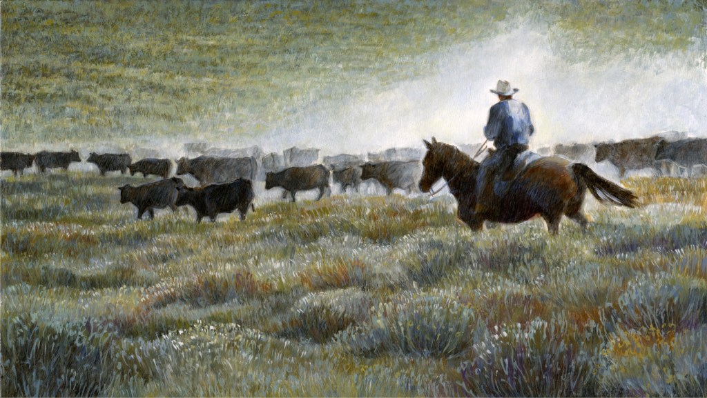 Sold this painting last month at Main Street Gallery in Weaverville CA 🙂 ‘Open Range’, was from my Great Basin series about 8 years ago and I had not shown it since then. I painted it from a blurry reference photo I took driving through Eastern Oregon, near Jordon Valley.